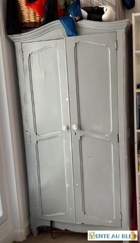 Vieux armoire peint en gris avec barre vetement et etagere, usé.