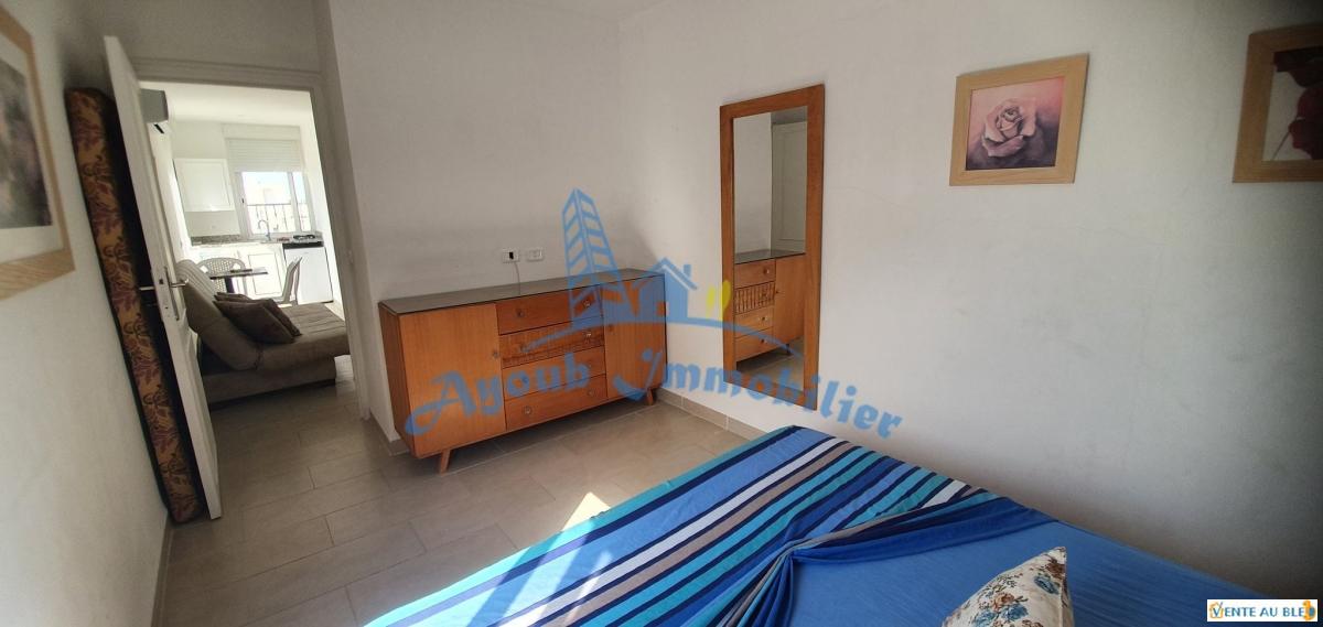 Studio à louer à Yasmine Hammamet S+1 chauffée et climatisée, salle de douche, une kitchenette ouverte sur le salon qui donne sur une terrasse. Prix 100 dt par jour