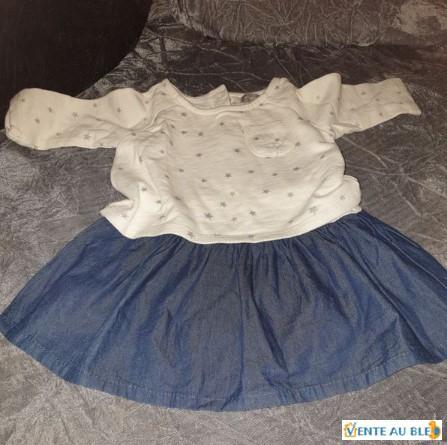 Robe earlydays 0/3 mois haut blanc etoile grise et bas couleur bleu jean